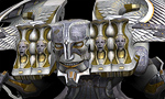 This is also known as the game's biggest WTF moment. I mean, look at him, the guy looks like the goddamn Pope. You're not expecting him to suddenly turn into... well, a giant face. That shoots lasers. (On a related note, all the boss fights with him suck.)